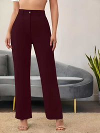 Elegant Maroon Lycra Solid Trousers For Women
